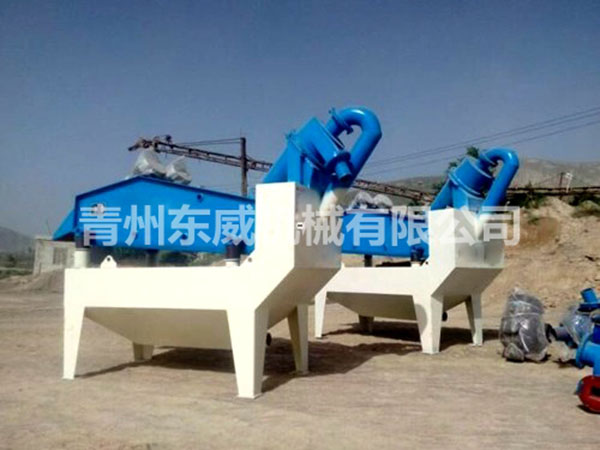 目前現(xiàn)有的洗沙生產(chǎn)線上,絕大部分采用濕法生產(chǎn)工藝,不論采用何種形式的洗砂機,其缺點就是細沙流失嚴(yán)重,嚴(yán)重影響沙子的級配,造成級配不合理,細度模數(shù)偏粗,大大降低了機制砂的產(chǎn)品質(zhì)量。過多的細沙排放,還會造成環(huán)境污染。為解決上述問題,青州東威機械技術(shù)部門潛心研發(fā)了細沙回收機(細砂回收機),該細沙回收系統(tǒng)吸收國外先進技術(shù),結(jié)合本土砂粉實際情況而設(shè)計的細沙回收設(shè)備。細沙回收機廣泛應(yīng)用于洗沙場、砂石骨料加工系統(tǒng)、玻璃原材料加工系統(tǒng)、人工制沙生產(chǎn)線、選煤廠粗煤泥的回收以及環(huán)保工程(泥漿凈化)等,可有效解決細沙回收問題。