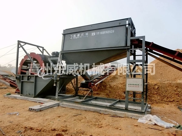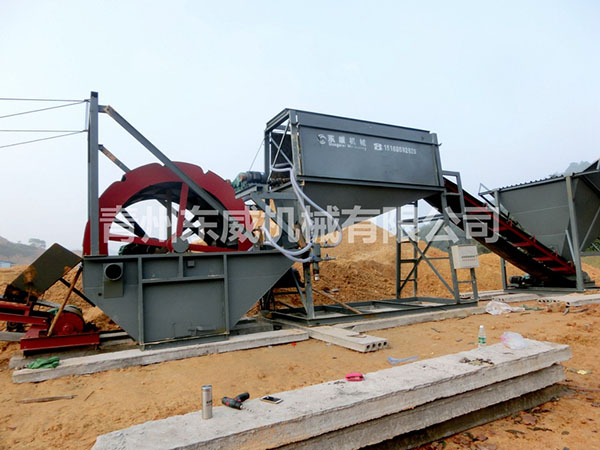 篩沙洗沙一體機(jī)采用更緊湊的結(jié)構(gòu),把整套設(shè)備集成于一個(gè)框架內(nèi),由料倉(cāng)、上料輸送機(jī)、滾筒篩、廢料輸送機(jī)、輪式洗沙機(jī)、成品料輸送機(jī)等等部分組成,可一次性完成砂石料洗選作業(yè)。設(shè)備總功率約42kw,用水量60-80m3/小時(shí),每小時(shí)工作量60-80m3,適用于機(jī)制砂、河沙、石粉的篩分洗選作業(yè)。