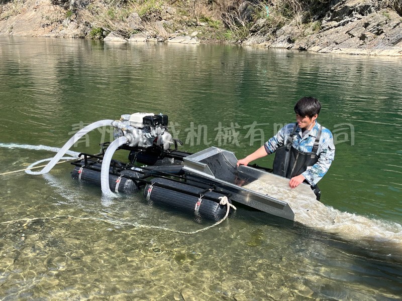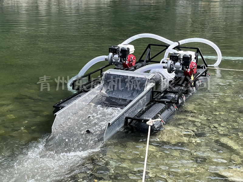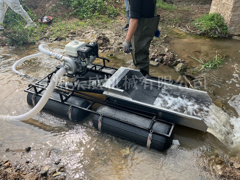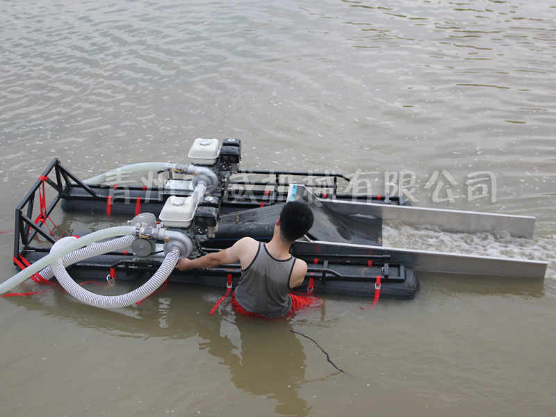 該設(shè)備抽沙系統(tǒng)采用新型結(jié)構(gòu),原料抽取過(guò)程中物料不流經(jīng)泵組,不用考慮泵和葉輪的磨損;沙金重選裝置為我公司專(zhuān)門(mén)研發(fā)的橡膠選金墊,沙金提取效率高,可對(duì)毛細(xì)金、片狀金進(jìn)行回收;適用于中小型礦場(chǎng)、河道、小溪淘金、探礦作業(yè);