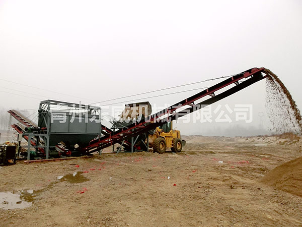 DW-SS型篩沙機由料倉、上料機、滾筒篩、沙子輸送機、石子輸送機等部分組成,主要針對石頭較多的工況,動力部分可選用電機或柴油機帶動,根據(jù)篩沙機配置,可篩分多種規(guī)格物料(比如沙子、1-2cm石子、2-4cm石子、廢料等),適用于沙場、河道、建筑工地等工況使用。